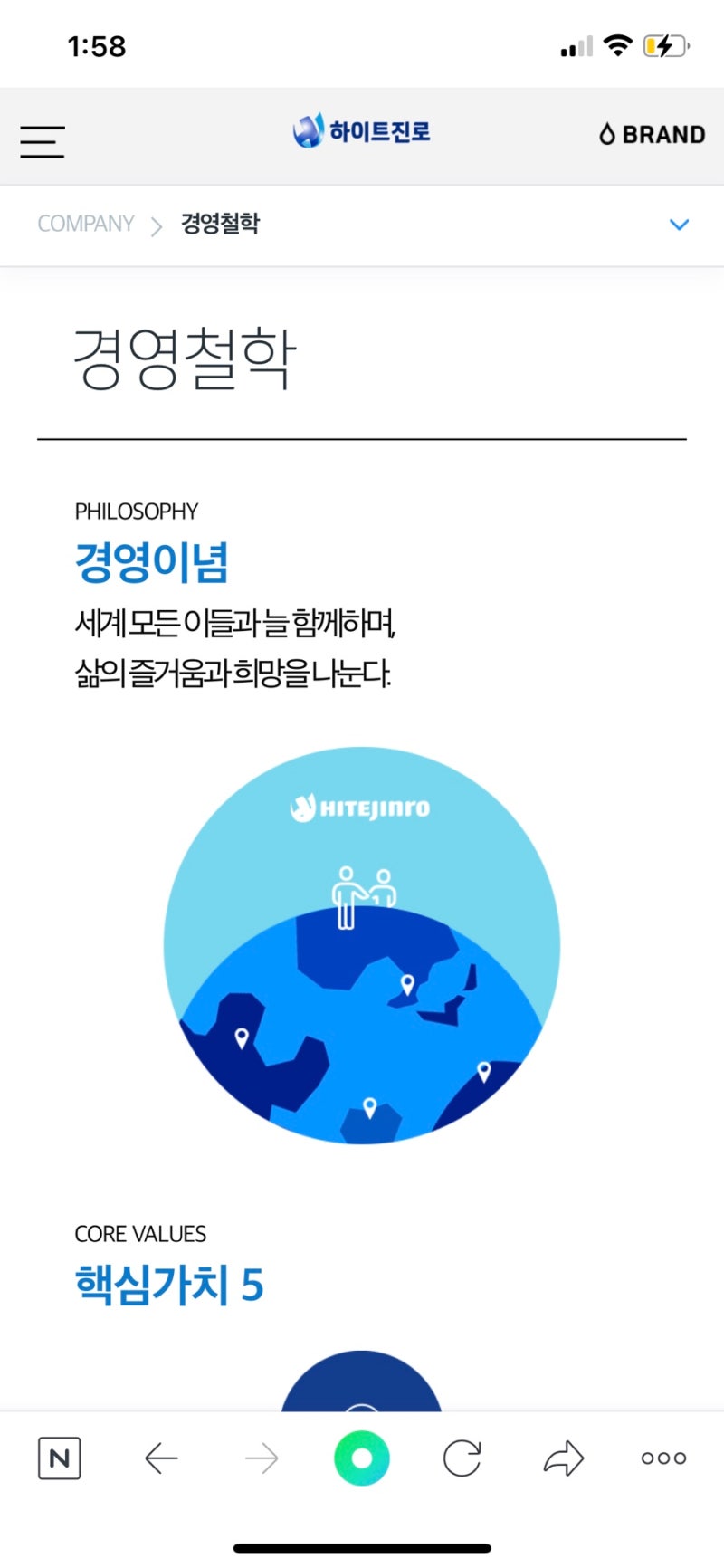 ✔ 핵심가치: 상생과 정도, 혁신, 즐거움, 열정 (소비자와의 상생, 끊임없는 혁신, 주류가 주는 즐거움 추구)